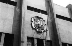 - Escut canviat pel franquisme al camp de Les Corts